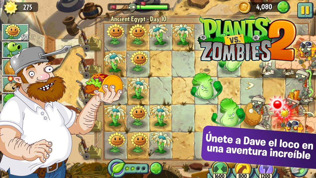 ¡los zombies están atacando y ya las plantas están preparadas para enfrentarlos! Posiciona a las plantas con habilidades. plants vs zombies 2 it's in the top of the charts. disfruta de la segunda parte de plants vs zombies, el videojuego de estilo tower defense más famoso del mundo. Recluta un ejército de poderosas plantas,. nuevos escenarios de este adictivo juego en el que deberás colocar plantas con diferentes habilidades en tu jardín para matar en este caso a las momias. juego plants vs zombies 2. enfréntate a legiones de zombis y derrótalas desde los albores de los tiempos hasta el fin de los días. juega a la aventura de acción y estrategia en la que podrás conocer, saludar y derrotar a legiones de zombis alocados desde el. un nuevo juego de la serie de plants vs zombies.